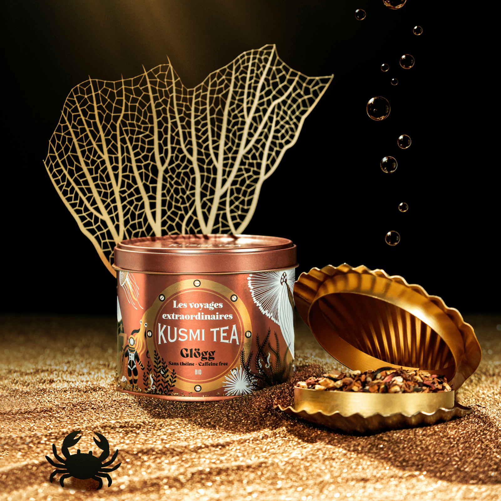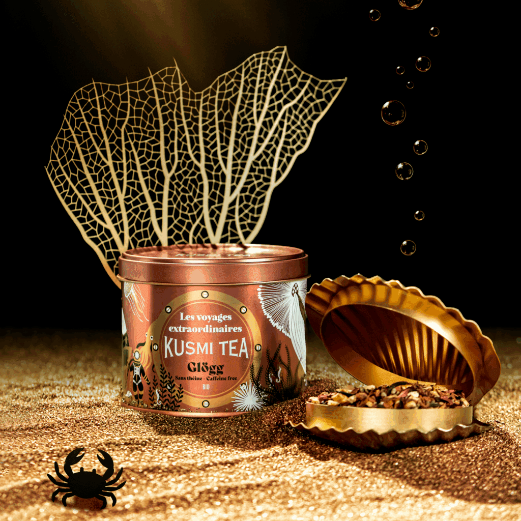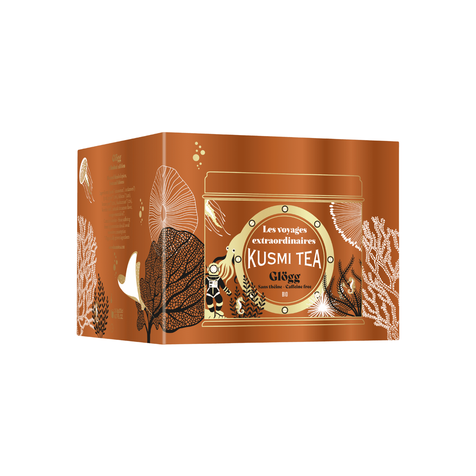 Limitowana edycja Glögg Bio 2025 została zamknięta w eleganckiej puszce o wyjątkowym, świątecznym designie. Utrzymana w głębokich, zimowych barwach i ozdobiona złotymi detalami, stanowi idealny pomysł na prezent dla miłośników herbat i infuzji Kusmi Tea. Puszka chroni susz przed światłem i wilgocią, dzięki czemu napar na długo zachowuje swój pełny aromat i świeżość.