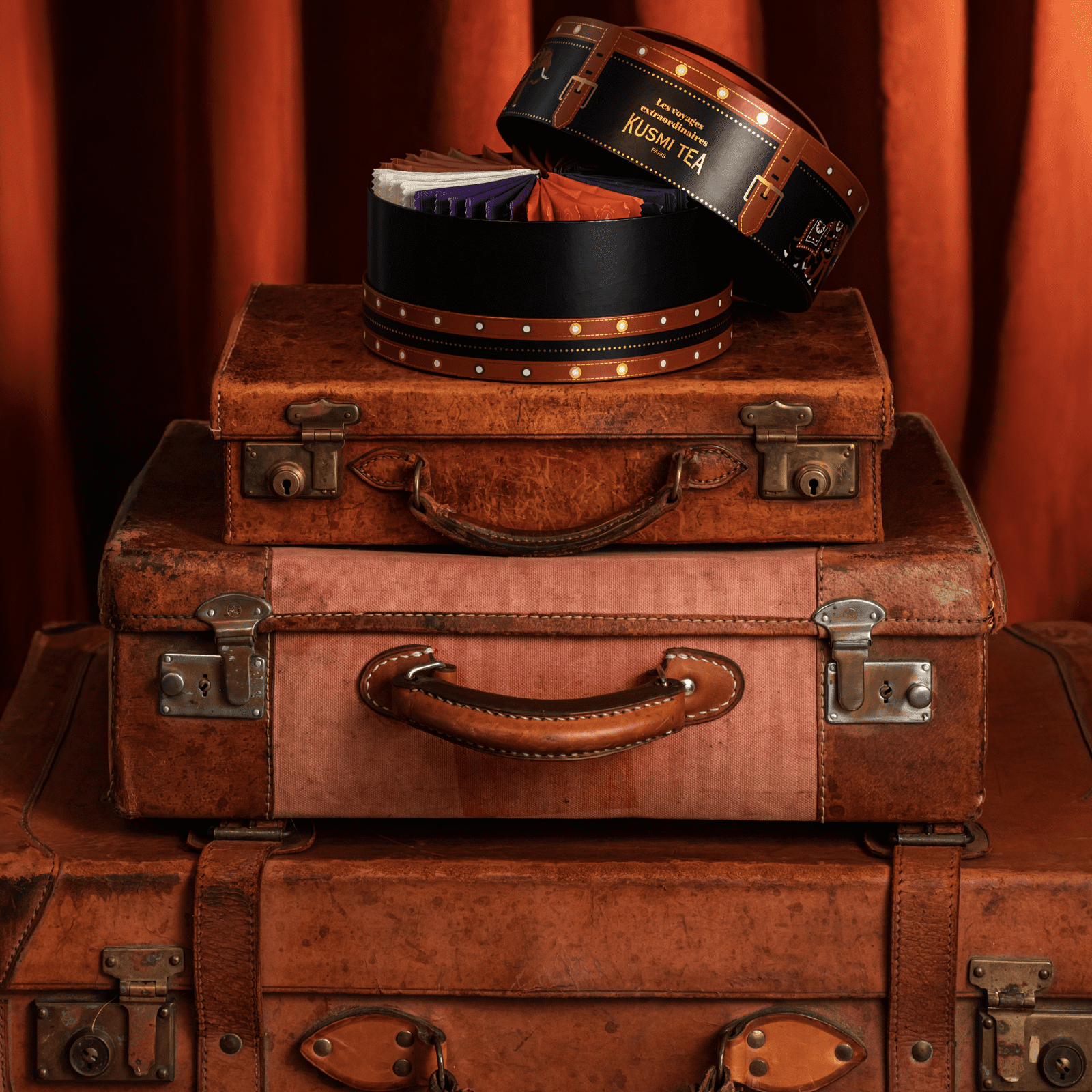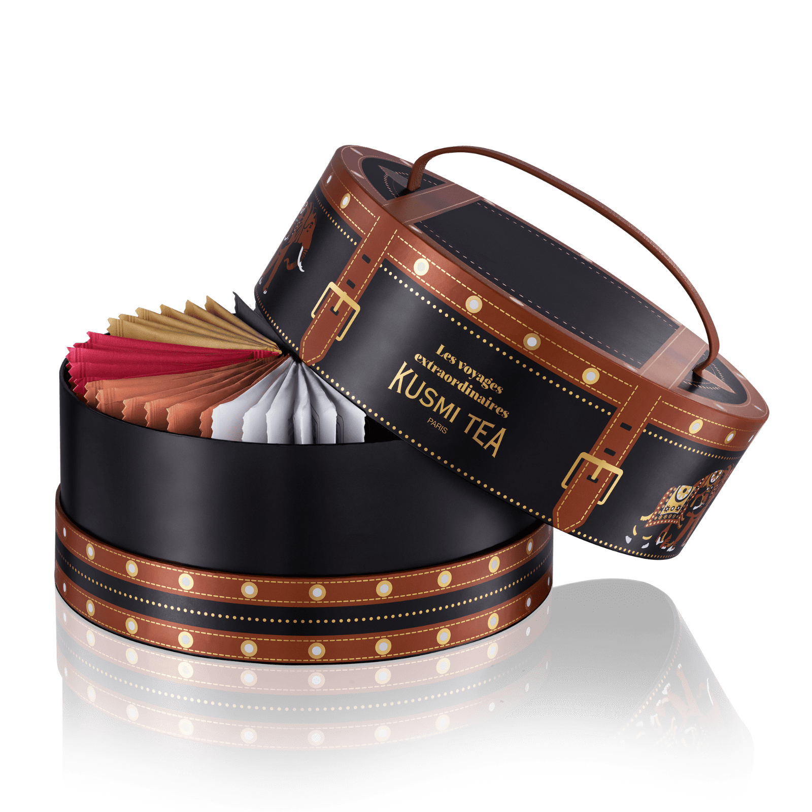 Ten kuferek kryje w sobie cenne skarby: 48 torebek herbat i naparów ziołowych, zawierających 8 wyśmienitych receptur z całego świata, w tym dwie najnowsze kreacje Kusmi: Memory Ritual i Le Dessert – dwie idealne herbaty na rozpoczęcie nowych przygód.